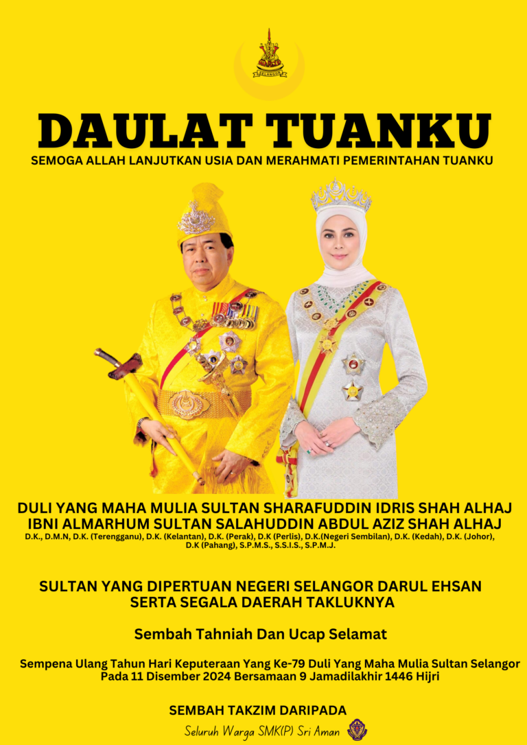 Tahniah diucapkan kepada semua warga SMK(P) SRI AMAN kerana berjaya mendapat 8 anugerah pada Majlis Apresiasi Kecemerlangan Sekolah Tahun 2024 Pejabat Pendidikan Daerah Petaling Utama.