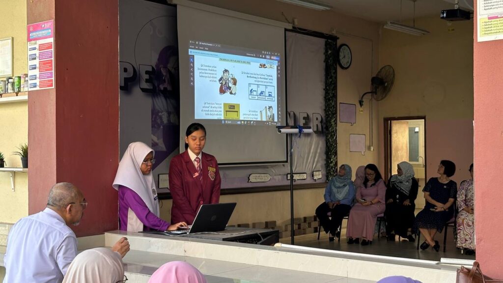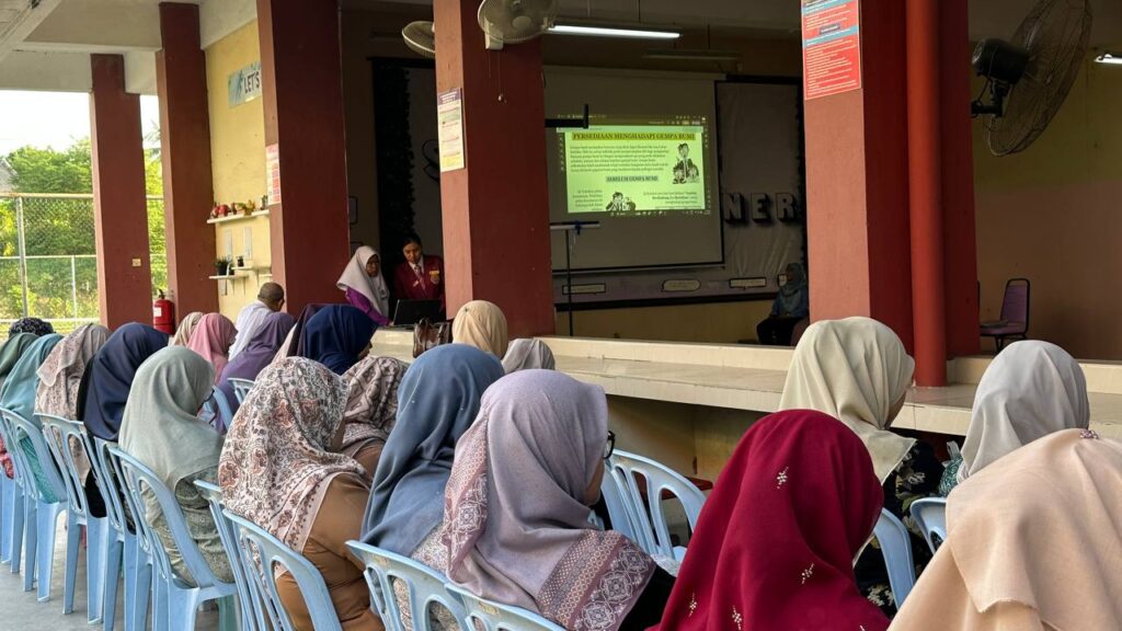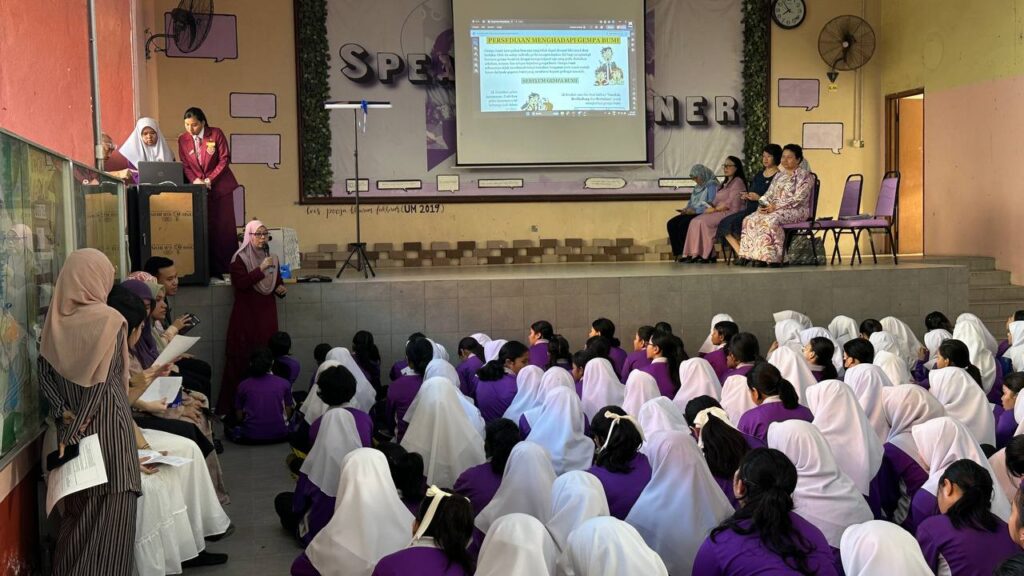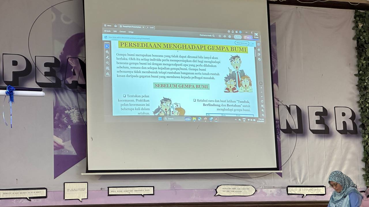 Taklimat bagi persediaan menghadapi gempa bumi yang disampaikan oleh Puan Mariam pada 6 Oktober 2025 di galeri SMK(P) Sri Aman
